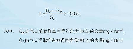 現場檢測:在沒備滿負荷運行時,測定講、 出口焦油(塵)含量,可按下述公式計算除焦油效率: